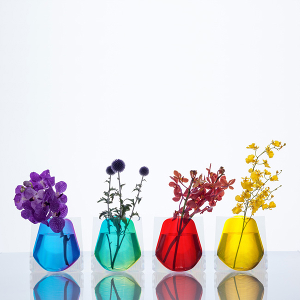 ぺったんこのビニールが水を入れるだけで花瓶になります。